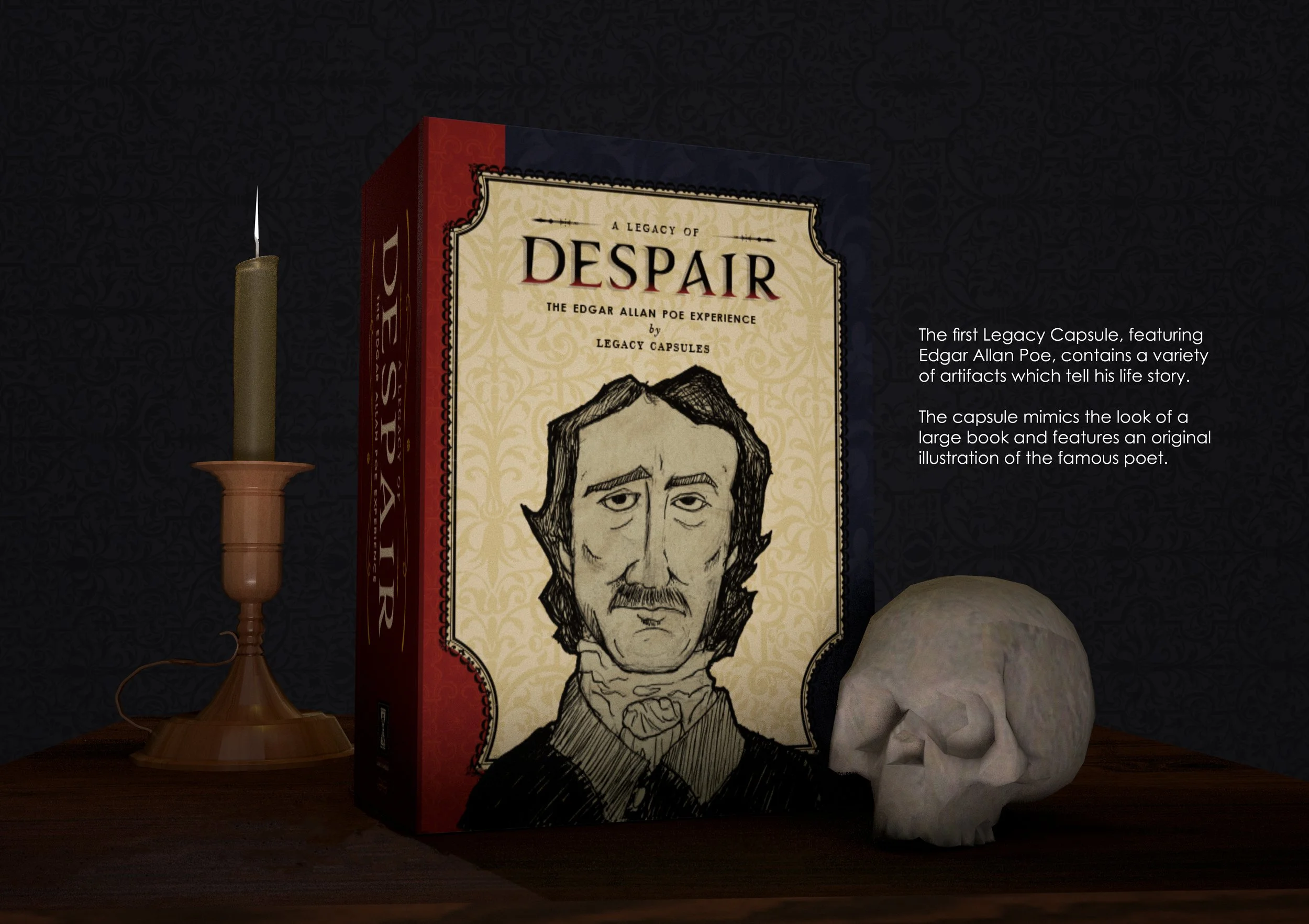 The first capsule features Edgar Allan Poe, and contains artifacts which represents key parts of his life story represented in physical form. These artifacts not only tell Poe’s story, but also act as collectable pieces that are must haves for Poe enthusiast.